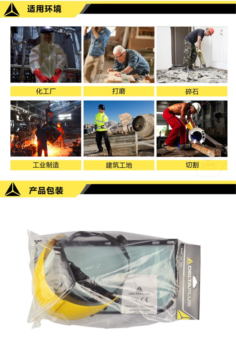 品牌: 代爾塔(DELTAPLUS) 商品名稱(chēng):代爾塔 頭箍式PC防化防沖擊面罩 實(shí)驗室防護面屏 防化學(xué)飛濺面屏 商品毛重:1.0kg 貨號:101304 類(lèi)型:防護面屏 功能:防化